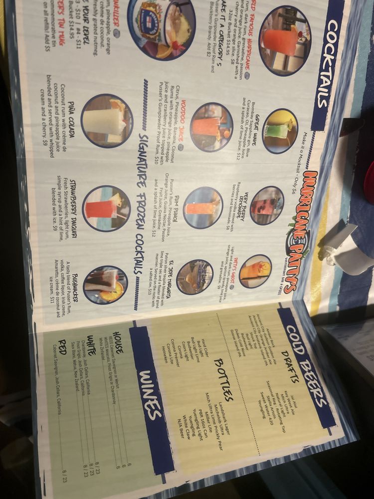 Introducing Hurricane Patty's, a vibrant and beachy bar located in St. Augustine, FL. This restaurant offers a diverse menu with seafood, American dishes, and vegan options. With amenities like live music, outdoor seating, and happy hour specials, Hurricane Patty's provides a festive and welcoming atmosphere for all guests. Customers rave about the fresh seafood, flavorful cocktails, and accommodating service. The menu features dishes like Caribbean Nachos, Hurricane Crab Dip, and Cuban Black Bean Soup, all bursting with flavor. Whether you're looking for a casual lunch or a lively night out, Hurricane Patty's is the perfect spot to enjoy delicious food and good company. Don't miss out on this gem in St. Augustine!